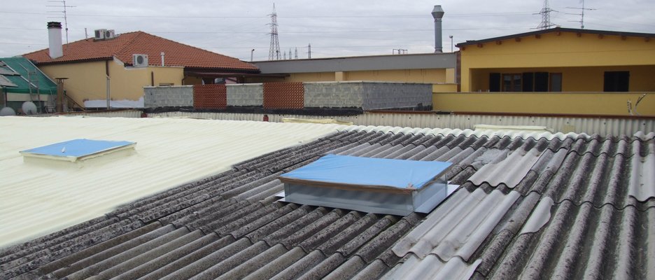 - il rivestimento e la bonifica dell'eventuale vecchia copertura in eternit, in quanto le fibre di amianto restano completamente rivestite ed inglobate nello strato di poliuretano espanso rigido creato sulla copertura